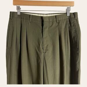 Vintage Aggio Solid Green Pleated High Waist Straight Leg Trouser Pants Size 10