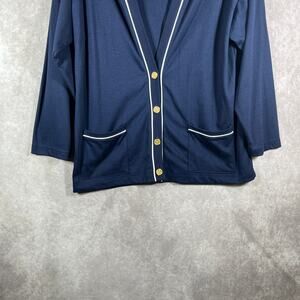 Vintage Aileen Cardigan Sweater Womens Large Navy Blue Knit Nautical 90s Academia