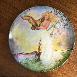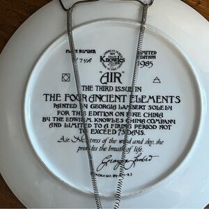 Very good vintage condition. One of four ancient element series. The plate is signed and comes with plate holder to hang properly on walls.