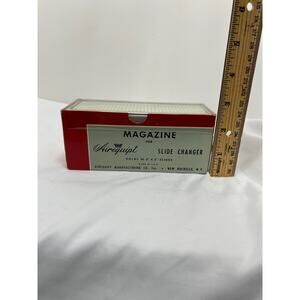 The Vintage Airequipt Automatic Slide Changer is a United States-made unit designed for Airequipt slide projectors. With a tray capacity of 36 slides and featuring slide retaining clips, this straight-type carousel allows for easy and efficient changing of slides during presentations. Perfect for film photography and camera enthusiasts looking to enhance their slide projector with a reliable and high-quality accessory.