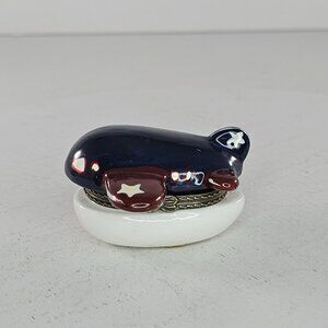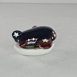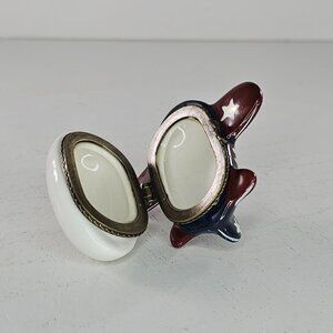 Vintage Airplane Ceramic Trinket Box With Hinged Lid Red White Blue Stars