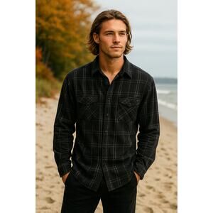 Features: Button front, chest pockets, long sleeves, lightweight flannel style