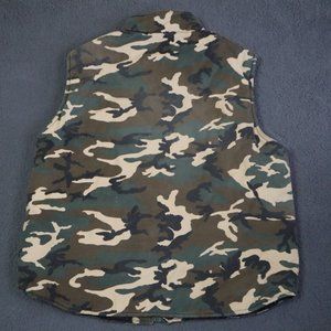 Pre-Owned Vintage Akademiks Military Vest Mens L Green Camo AKDMKS Graphic Cotton Blend have minor flaw a little rip near the front pocket.