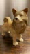 Curly tail and mane, this porcelain dog figure measures approximately 4.25” tall and 4.5” in length. Stamped “Made in Japan”.