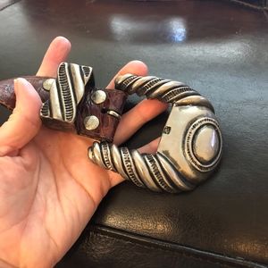Vintage Al Beres Genuine leather and sterling silver plated Buckle. Small, Very Heavy stylish belt