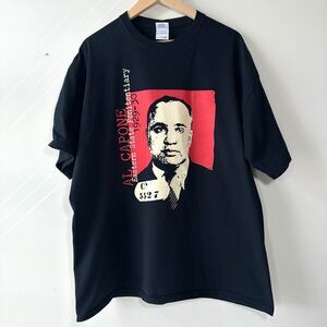 Awesome vintage Al Capone mugshot graphic t-shirt in black, size XL. Classic gangster-themed shirt featuring the infamous mob boss from Chicago. Great condition with a bold print and soft cotton feel. A must-have for collectors of crime memorabilia, mafia history, or vintage statement tees.