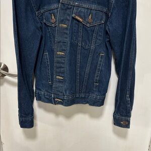 It is a dark denim- camera phone wanted to lighten the pictures. Collar shows some wear.