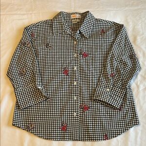 This amazing vintage button-down top is perfect for any Alabama Crimson Tide football fans out there!! This unique top is over 20 years old and in near perfect condition. It features classic Alabama football insignia embroidery all over. You won’t find another top like this out there! Great for Bama game day at the tailgate or at home watching the game with friends and family and yelling ROLL TIDE!