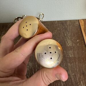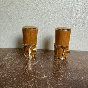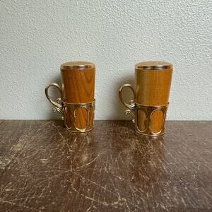 Vintage Alabama MCM Wood Copper color plastic mug style salt & pepper shakers