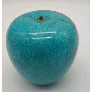 Vintage Alabaster Marble Stone Blue Apple Paperweight