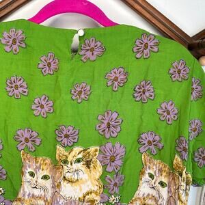 vintage retro batik graphic. cat lady kitten kitty blouse floral granny