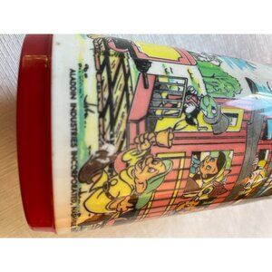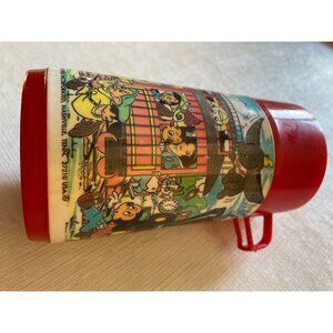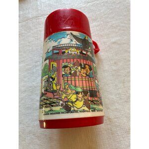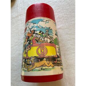 Vintage Aladdin Disney Express Red & White Thermos 1970s With Mickey & Friends