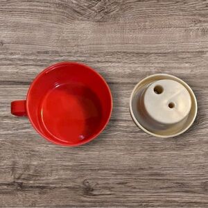 It is made of plastic and includes both the lunchbox and a thermos for beverages. Thermos holds 8 ounces