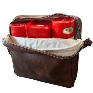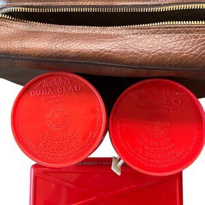 Vintage Aladdin Picnic Lunch Box Dual Thermos Lunch Box Set Brown Carry Bag MCM