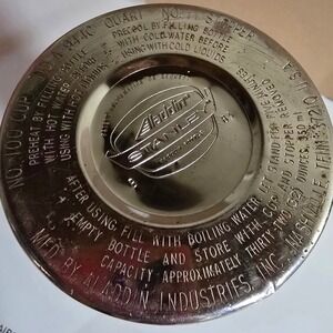 Classic vintage Aladdin Stanley vacuum bottle thermos with the correct matching parts. SEE PHOTOS PRIOR TO PURCHASE: Surface wear consistent with age/use.