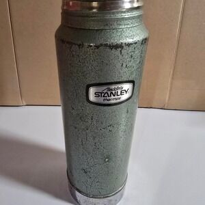 KEYWORDS: vintage Stanley thermos, Aladdin Stanley vacuum bottle, A-944C quart, 1 quart thermos, 32 oz vacuum bottle, No. 100 cup, No. 11 stopper, green hammertone, camping thermos, hunting thermos, work thermos, retro outdoor gear, collectible thermos, metal thermos bottle