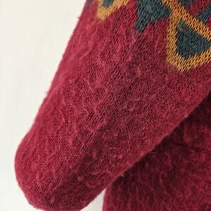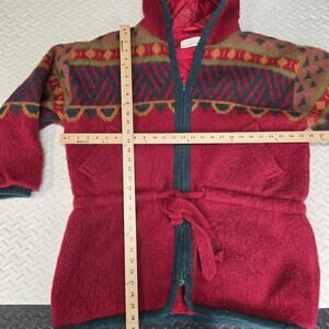 Vintage Alafoss 100% Wool Coat Icelandic Medium Oversized Aztec Southwestern Red