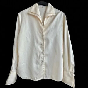 * Excellent pre-owned condition vintage Alain Figaret Paris women’s fitted button-down blouse in ivory. No stains or flaws.