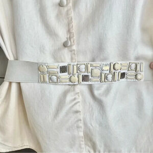 Vintage Alain Figaret Women’s Button-Down Shirt Double Collar Size 8 Ivory Belt