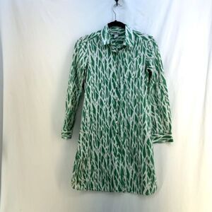 Alame Diane von Fursternburg Womens Green White Snap Button Down Shirt Dress 2