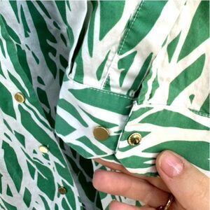 Vintage Alame Diane von Fursternburg Womens Green White Snap Button Down Shirt D