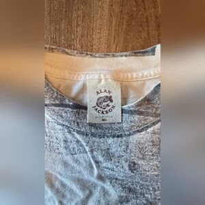 True vintage Alan Jackson concert-style T-shirt featuring an iconic all-over grayscale portrait print of the country music legend himself. Made from soft, worn-in cotton with the classic Alan Jackson fish logo tag at the neck.