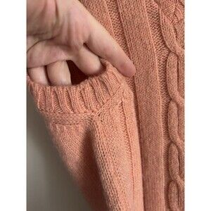 Handsome and high quality men's knit sweater. This vintage piece is made in England with colorful wool yarn. Sort of an orange/pink color. Close up of label is closest to color accuracy. Flattering and interesting v neck design that is timeless, classic, and stylish. Pairs perfectly with a collared shirt underneath and a blazer or sportcoat in colder weather. Fall, winter, and spring. Cable knit design that looks professional and is great for office attire, dressing up, or academic looks.