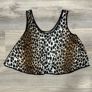 Vintage Alan R. Crop Top Tank Leopard Print Oversized Satin USA Made Size L