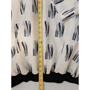 Elevate your wardrobe with this authentic Vintage 1990s Alan Stuart Pullover Shirt! This vibrant, high-quality shirt captures the iconic oversized and relaxed style of the era. The all-over abstract brushstroke pattern in black, charcoal, and light gray against a creamy white background makes a bold artistic statement. NOTE: There are two tiny stains in the fabric on the front of the shirt - see photos.