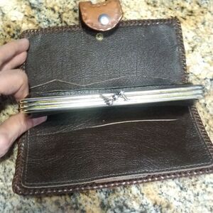 Vintage Alaska Tooled Leather Red Rose Flower Kisslock Kiss Lock Wallet.