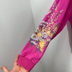 Vintage Alaska Wildflower Hummingbirds Painted Screenprinted Pink Sweatshirt