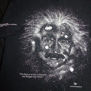 Vintage Albert Einstein Outer Space Stars Portrait T-Shirt - Size Medium, Measures p2p=19" Length=25" - Excellent Condition, No Flaws - Black Color Shirt