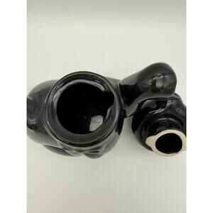 This vintage Albert Kessler teapot is a charming addition to any collection. Featuring a black glossy kitty in a sitting position, this lucky cat teapot stands 7 inches tall. It's a unique and eye-catching piece that is sure to bring a smile to your face. Perfect for tea lovers and cat enthusiasts alike! Get this purr-fect teapot now!