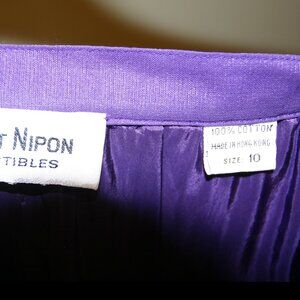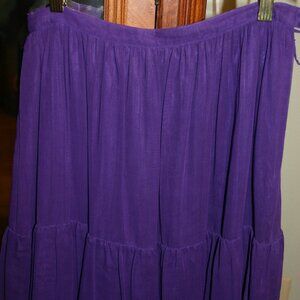 Gorgeous purple skirt with three tiers, 100% flowy lightweight cotton, fully lined. Size 10 but seems to run small, side zipper. Waist measures 28", 36" long. Perfect condition.