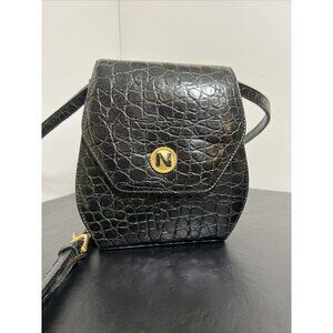 Vintage Albert Nipon Embossed Leather Crossbody Bag Black 7” x 6”