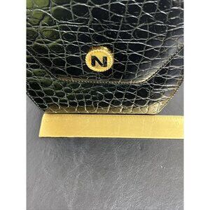 Vintage Albert Nipon Embossed Leather Crossbody Bag Black 7” x 6”