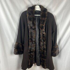 Vintage Albert Nipon Wool Faux Fur Swing Coat Women Medium Brown Mob Wife Work