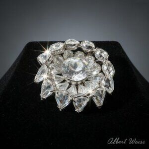 Vintage Albert Weiss Clear Rhinestone Brooch - Sparkling Floral Design