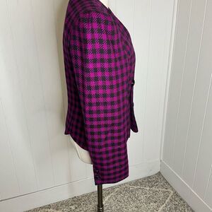 Vintage Albert Nippon Suits Women's 6 Black Pink 100% Wool Peacoat Suit Jacket
