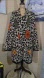 This garment showcases a classic design, reminiscent of vintage French fashion. The knit sweater jacket features two practical front pockets, enhancing its functionality. It is detailed with fabric buttons, adding a touch of elegance to the overall aesthetic. Adorning the sweater is a bold print, offering a charming visual appeal. Has shoulder pads. This piece is crafted with a medium-weight fibers ensuring comfort and versatility for various seasons.