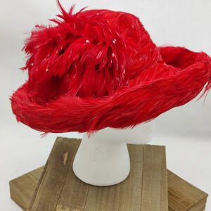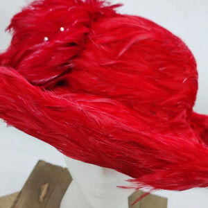 Vintage Albrizio Hat / Red Feathers + Rhinestones