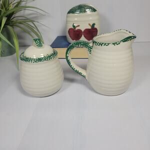 Vintage Alco Apple Garden Set Salt Pepper Shakers, Napkin Holder, Sugar Creamer