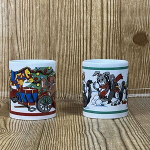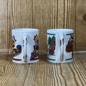 Vintage Alco Fancy Handle Teddy Bear Ceramic Christmas Mug in Box Set Of 2