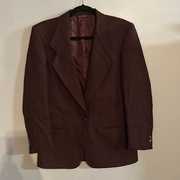 Vintage Alcott & Andrews burgundy and black check wool blend blazer size medium