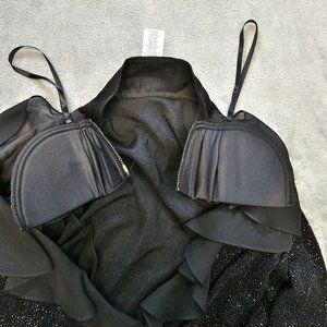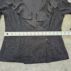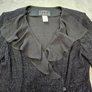 Vintage Alex Evenings Blouse Women's Petite Small Black Shimmery Wrap Top 80's