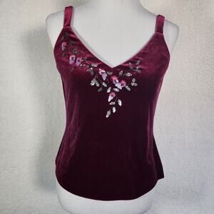 Vintage Alex Evenings Velvet Cami Top Small Maroon Sequin Fairygrunge Whimsigoth