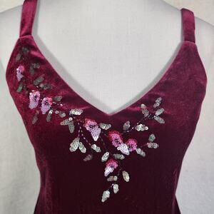 Vintage Alex Evenings Velvet Cami Top Small Maroon Sequin Fairygrunge Whimsigoth