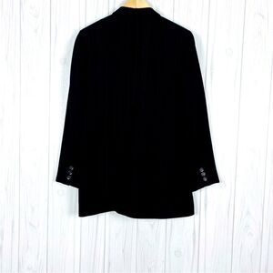This blazer is casual and elegant. Everyone loves for its comfort and versatility. 69% Triacetate, 30% polyester, and 1% rayon. Pit to pit 19” approx, sleeve 23” approx, and length 30” approx. Size 6. Button front jacket. Long sleeves. Lined and light shoulder pads. Preowned. This item is in excellent condition with only light signs of wear.