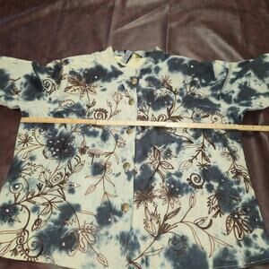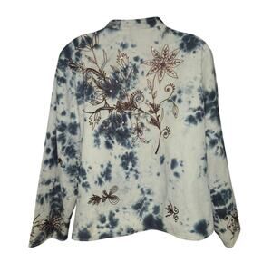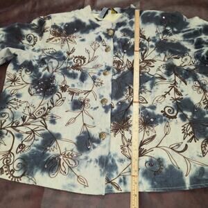 Vintage Alex K Tie Dye Embroidered Floral Sequin Jacket Women 1XL Boho Artsy Y2K