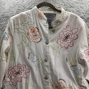 Vintage Alex Kim Women's Large Floral Embroidered Jacket Button Up Lined EUC